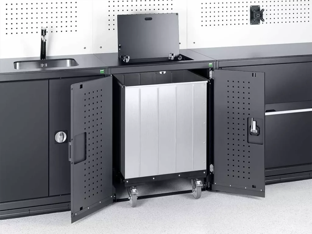 - fahrbares Entsorgungsdepot aus Aluminium.
